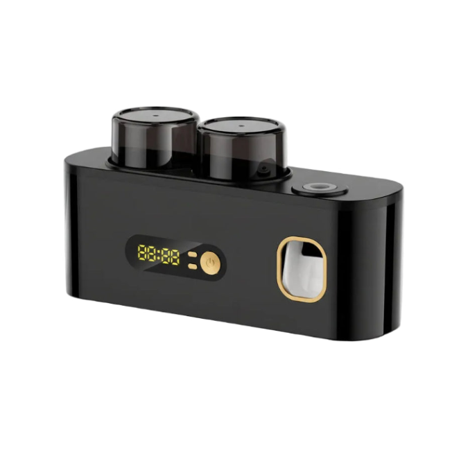 This wall-mounted toothbrush holder is designed to organize toothbrushes and help keep them dry between uses. The unit features a UV light function and warm air drying, intended to assist with everyday toothbrush maintenance.